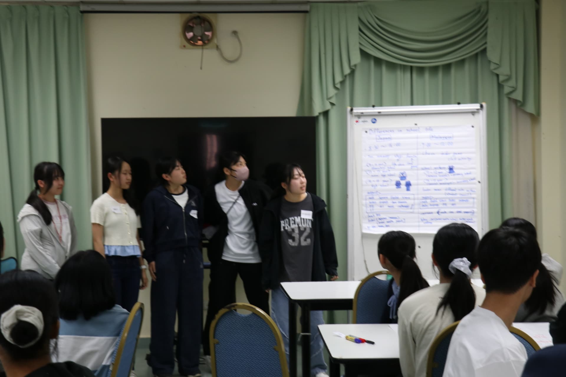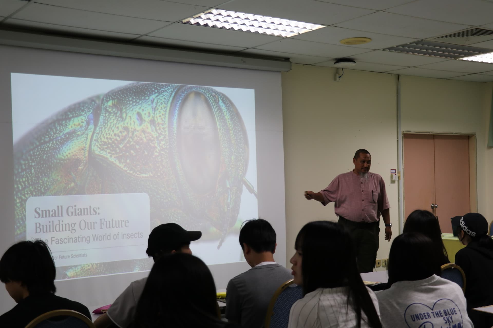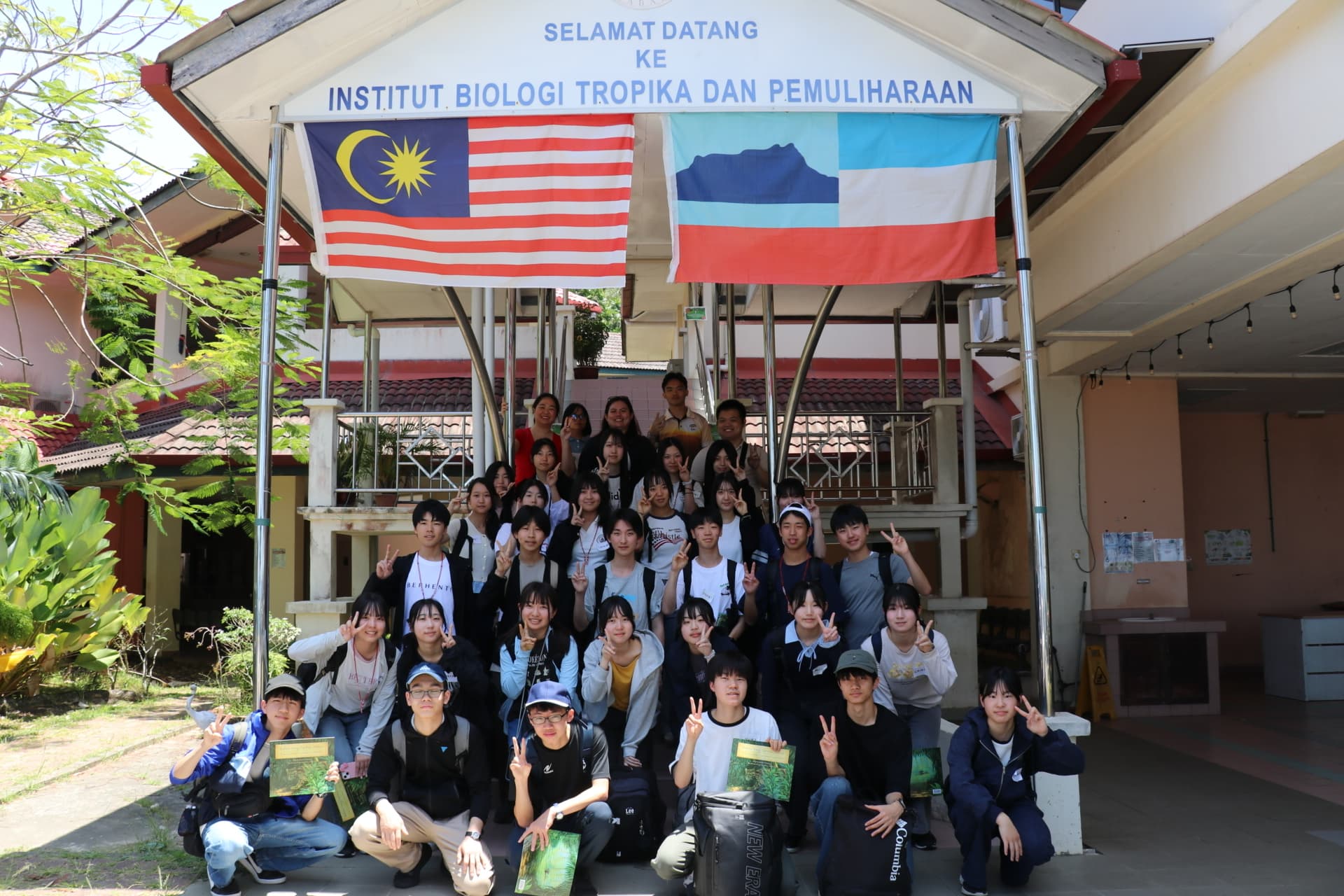 午前中は国立サバ大学で昆虫の最新科学の講義を受けました。その後、サバ大学の学生を交えて、マレーシアと日本の比較や、生物の課題について議論して、最後に班ごとに発表ました。午後は、コタキナバルハイスクールで交流しました。岐阜高校の生徒はあやとりを教えて、コタキナバルハイスクールの生徒からは、敷地内で育てているトロピカルフルーツを見せてもらい、いくつかは試食させてもらいました。