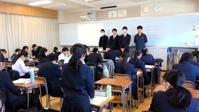 11月6日(木)6、7限2年生の総合的な探究の時間では、「ゼミ内探究成果発表会」を実施しました。今まで探究活動で取り組んできた成果について、ゼミ内でプレゼンテーションをしました。今回の発表会では、単に発表するだけでなく「Good jobシート」を用いて、相互に発表について感想や気づいた点を交流しました。質疑応答の時間も、感想を伝える姿も見られ、良い意見交流の場になっていました。さあ、他のグループの意見をどう自身の探究活動に取り入れていくか。がんばれ、北斗!