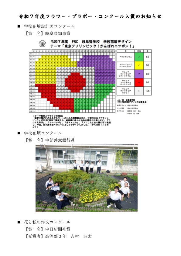 令和7年度フラワー・ブラボー・コンクール入賞のお知らせ