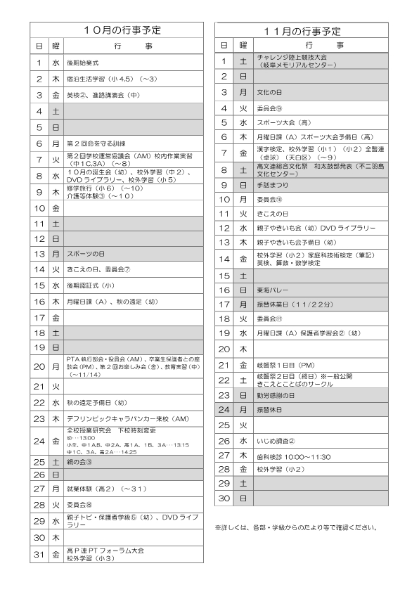 年間行事予定