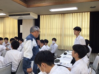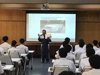 石川様は新明工業で車体のレストア事業部の顧問として、トヨタ博物館に展示してある車両や多くのクラッシックカーのレストアを手がけられた方で、今回の講話では、ご自身の経験談や仕事観、人生観、あいさつの大切さ、手がけられたレストアした車両の裏話など、とても貴重な講話を伺うことができました。また6時間目の質疑応答では、予定時間の直前まで生徒たちが積極的に質問し、レストアや仕事観について大変興味深く学ぶことができました。