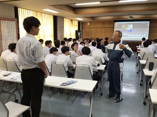 自動車工学科1、2年生が新明工業株式会社自動車事業本部顧問の石川 實様による出前講座を受講しました。