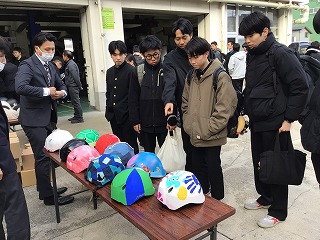 この講習会は、実習・授業・部活動・登下校で活用しているヘルメットの正しい被り方、重要性を再認識し、様々な事例から危険を知ってケガを防止するという目的のもと行われました。