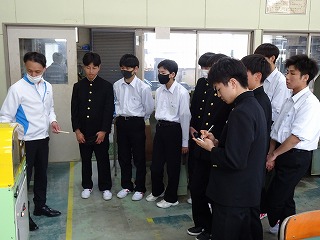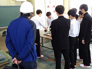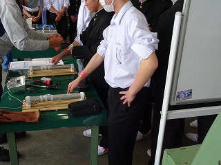 一般社団法人岐阜労働基準協会主催の「安全衛生教育」が、本校で行われました。機械工学科の1年生を対象に、労働基準協会会員である、各会社の9名の講師の方々より、労働災害の事例を実際に体感しながら学びました。体験では、感電、落下物、ローラー・チェーンの巻き込まれ、シリンダーの挟まれ、高水圧噴射など工場で発生しうる災害をテーマに、6つのグループに分かれて実施しました。生徒たちは、実習開始前の段階で安全に関する意識を高める事ができ、作業に向けて気持ちを引き締める貴重な良い機会となりました。