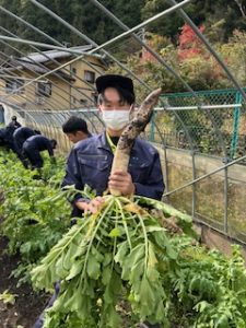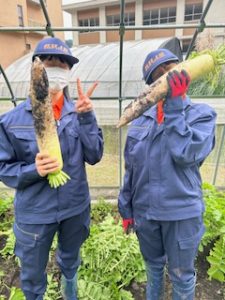 郡上高校園芸科学科ではダイコンの栽培を行っています。9月に種をまき、間引き、土寄せ、追肥と、総合実習の授業を中心に管理を行ってきました。大切に育てた大根が収穫の時期を迎え、今日は収穫と調製を行いました!