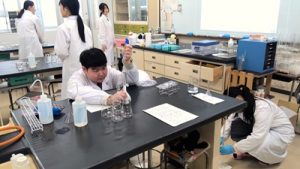 生徒たちはヘルメット着用し、安全帯をしっかりと装着し、一段一段慎重に登っていきました。目指すははしごの一番上です。