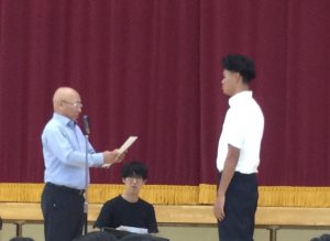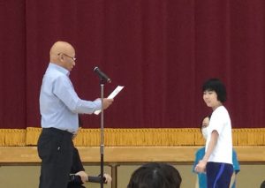 連合児童生徒会役員交代式にて新役員が校長先生から認証状を受け取った後、新しいマスコットキャラクターが歴代のキャラクターとともにお披露目され大盛り上がりとなりました。