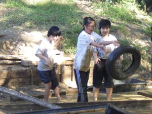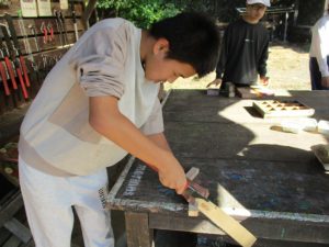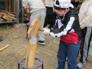 中学部1年生が「自然を体験しよう」の単元で、森林文化アカデミーmorinosへ校外学習に行ってきました。薪割りや火起こしを体験し、自分たちが育てたさつまいもを焚き火で焼いて、焼き芋を作って味わいました。焼き芋が出来上がる間には、グループに分かれて山登りをしながら秋見つけを行い、季節の移ろいを肌で感じました。午後からはアクティブ活動の時間。どろんこ池では思い切り泥まみれになって遊んだり、のこぎりを使って思い思いの作品作りに挑戦したりしました。学校生活ではなかなかできない活動ばかりで、生徒たちにとって貴重な体験となりました。