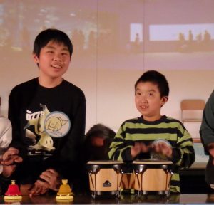 体育や音楽の授業で行ってきたダンス、楽器演奏を行いました。ダンスは「シャケサンバ」「What We Got~奇跡はきみと~」を、楽器演奏は「Sing Sing Sing」をグループに分かれて今までの成果を披露することができました。そして、進行を担当したメンバーも盛り上がりたい!!!と、会場を巻き込んで「ジャンボリ・ミッキー」を踊りました。
