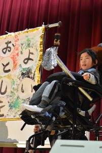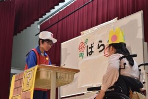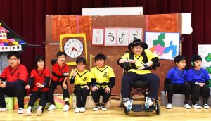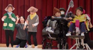 自立活動や音楽、体育で取り組んできた内容や道具を使った『エンターテインメントショー』。学年目標「ハッピー♡フレンズ」を合言葉に、自分たちはもちろん、観客の皆さんにも楽しんでもらえるように、様々な表現やパフォーマンスを行いました。