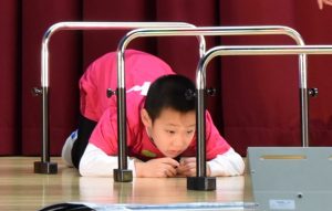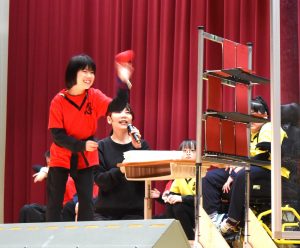 小学部は羽島高校科学部による科学ショーを見学しました。会場ではさまざまな実験が行われ、不思議な体験に驚きの連続でした。段ボールから空気の輪が飛び出す実験では、「わぁ!」と歓声が上がっていました。科学の楽しさを感じる、わくわくいっぱいの時間となりました。