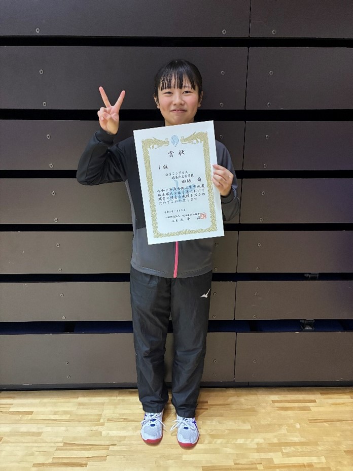 この結果を受け、3月23日~3月25日に新潟県で行われる全国高等学校選抜卓球大会に、田坂萌さん(2年)が出場します。