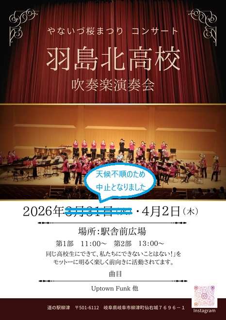投稿日: 2026年3月30日2026年3月30日 投稿者: 管理者[2年次]「総合的な探究の時間」の実践について(案内) 2年次「総合的な探究の時間」において、立案、協議してきた企画のひとつが下記のとおり実践されます。 ぜひ道の駅柳津にお越しいただき、吹奏楽部の演奏をご堪能ください。