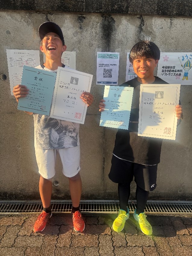 投稿日: 2026年4月16日 投稿者: 管理者[男子ソフトテニス部]岐阜市民大会結果 4/5(日)岐阜ファミリーパークで行われました岐阜市民ソフトテニス大会高校男子の部において、本校3年次生、川西修史・野崎斗羽ペアが3位に入賞しました。他のペアもよく健闘しました。IH予選に向けて良い流れを作ることができたので、今後の練習も頑張っていきます!