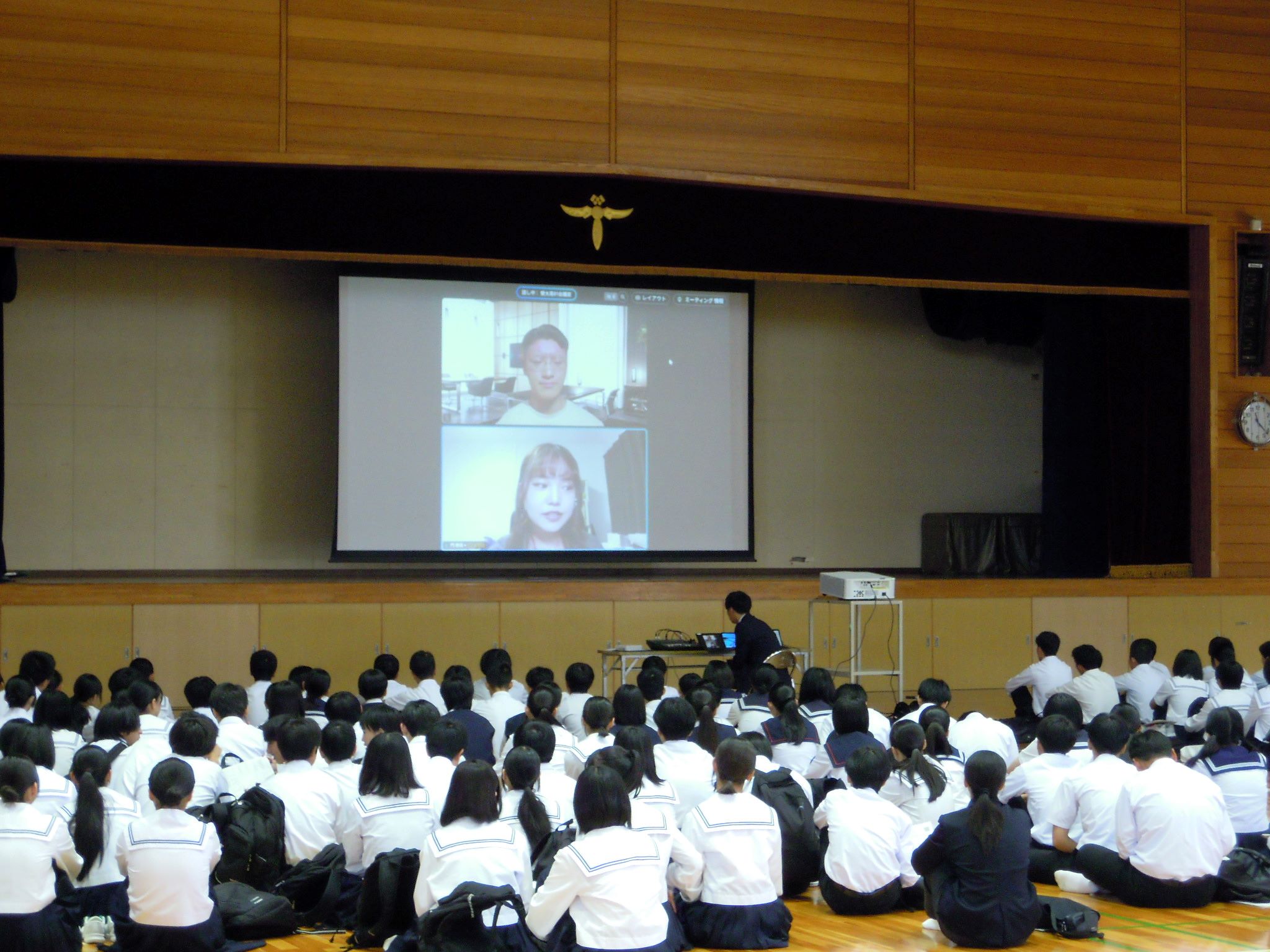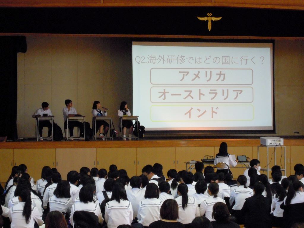 生徒会による学校説明では、寸劇やクイズ形式による学校紹介、部活動の動画紹介が好評でした。