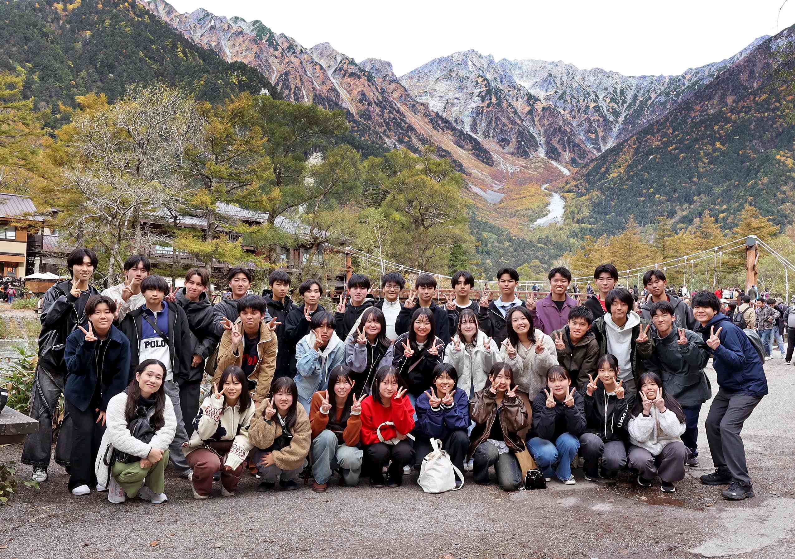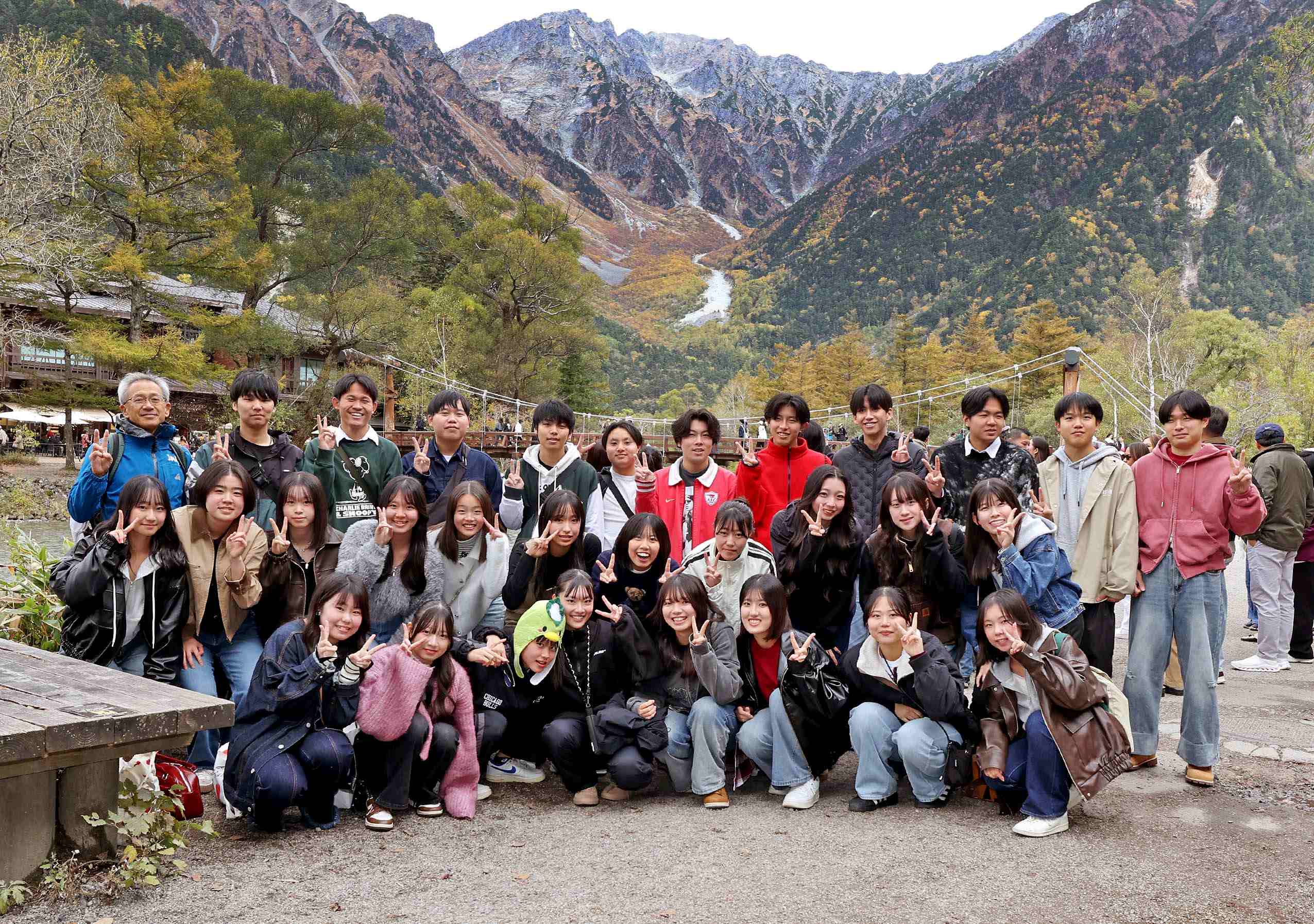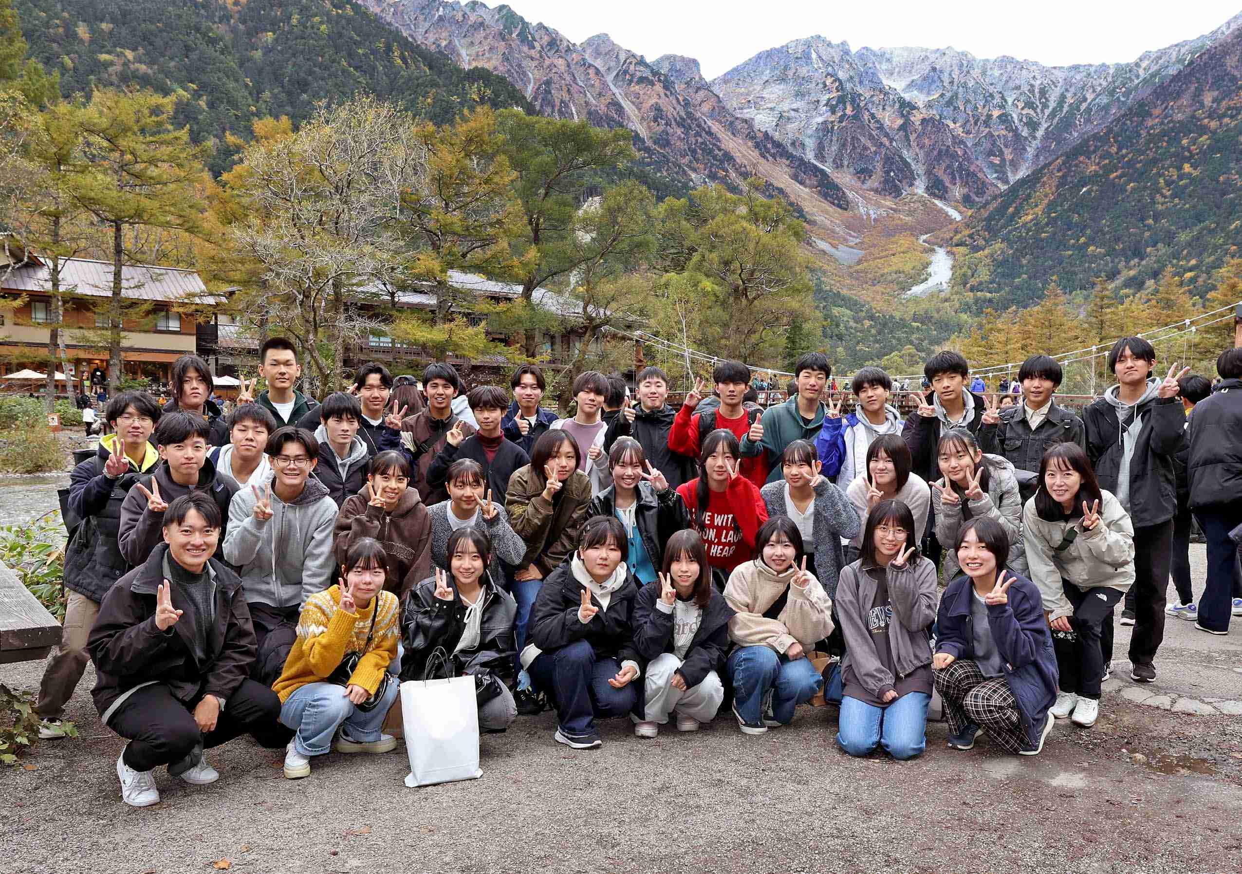 10月21日(火)、3年次生は遠足で長野県にある中部山岳国立公園上高地に行ってきました。河童橋でクラス毎に記念写真を撮った後は、クマの出没に備え、全員で梓川の左岸から明神橋を目指し、明神橋を渡って河童橋まで戻ってくるコースを散策しました。