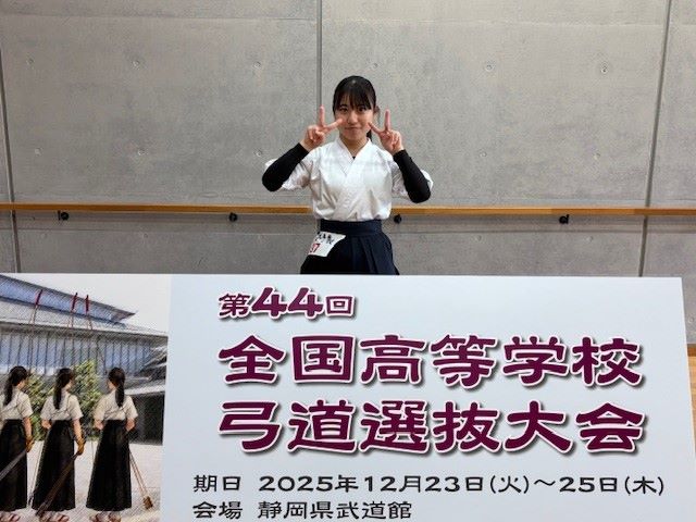 12月23日(火)に静岡県藤枝市の静岡県武道館で開催された全国弓道選抜大会に本校2年生の今井杏さん(下呂中出身)が出場しました。