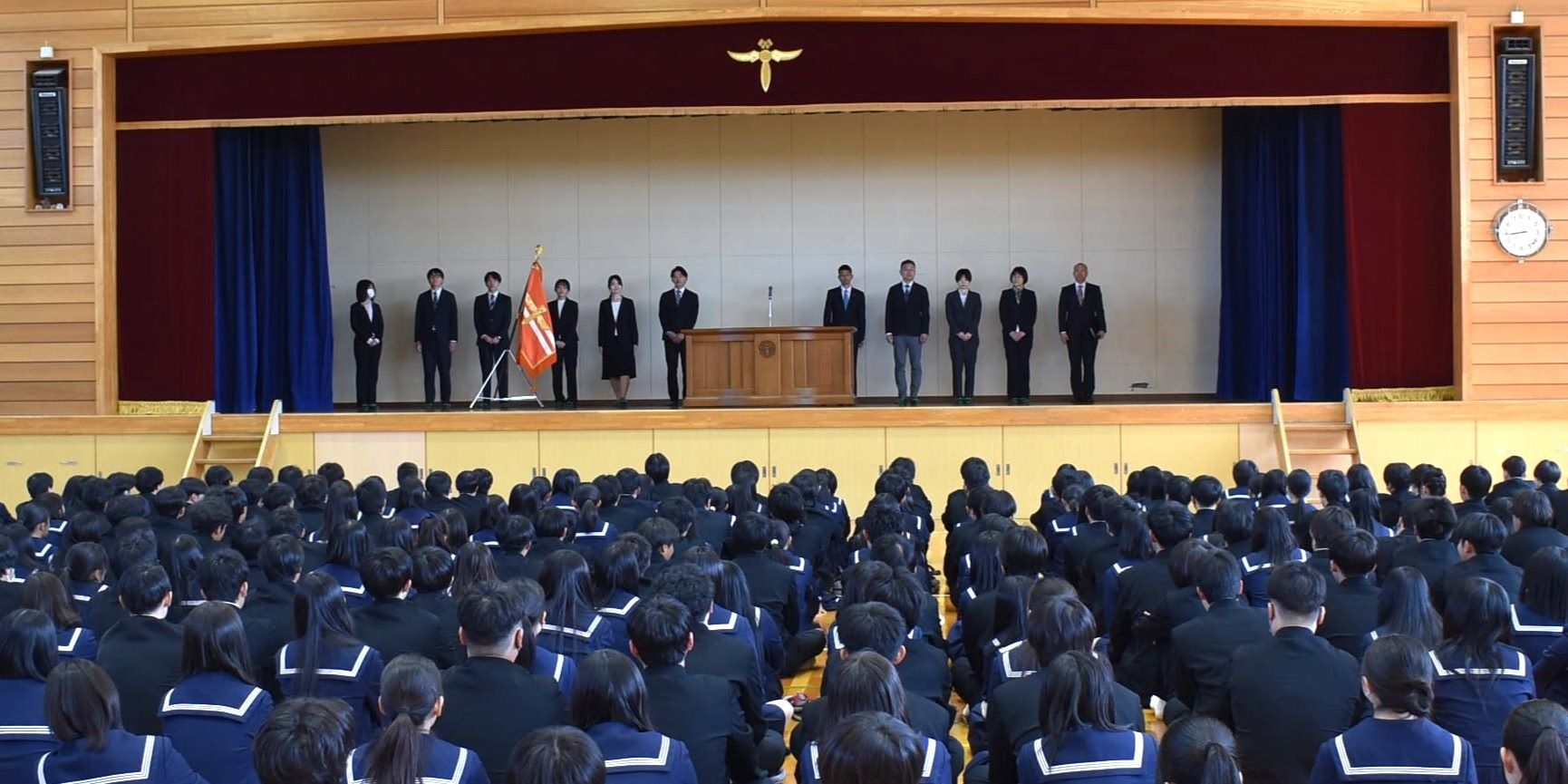 新たな先生方を迎え、皆、少し緊張気味。新しいクラス、新しい仲間、先生とともに切磋琢磨、確乎不抜を胸に刻もう。