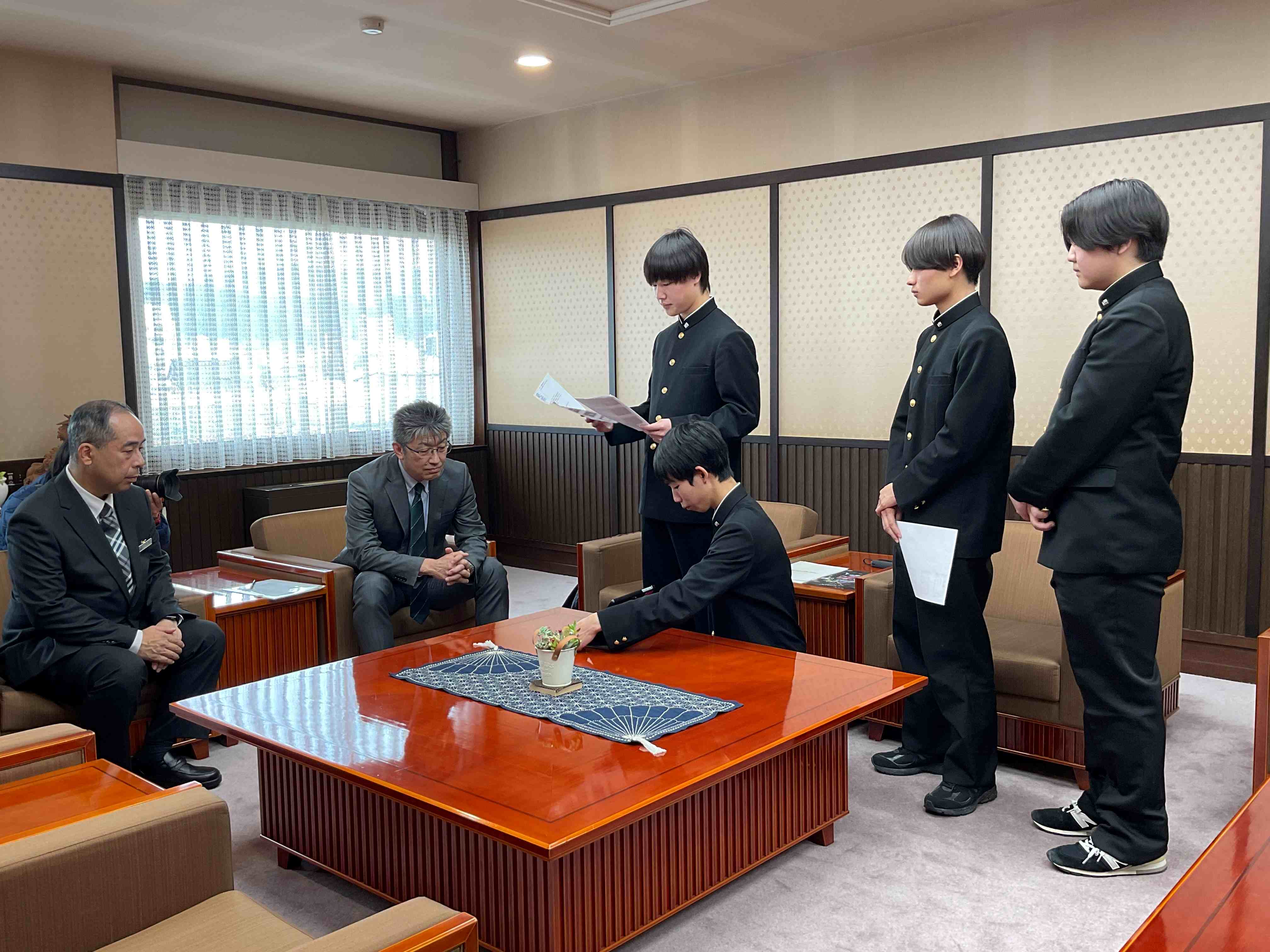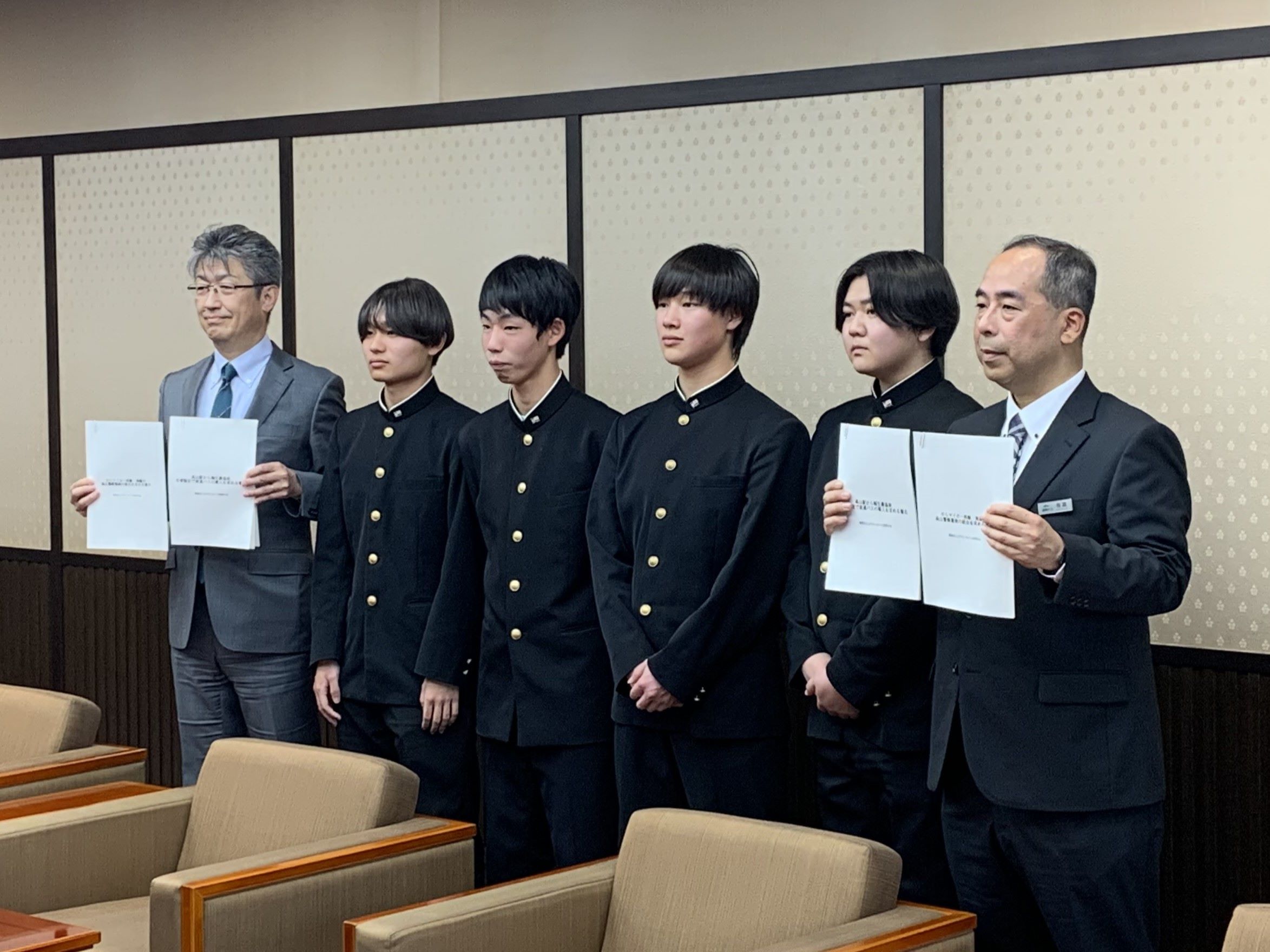 報告会では、「市内路線バスに関して意見をもらえる機会は少なく、貴重な提案。協議し、実現可能なことは前向きに取り組みたい」との言葉をいただきました。代表の切手君は「仮に僕たちが高校生の間に実現しないとしても、今後の後輩のために声を上げ続けることが大切だと思う。」と話しました。