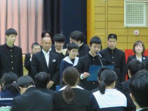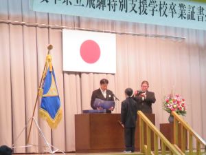 「旅立ちの言葉」では、小学部卒業生が、自分たちが頑張ってきたことや心に残っている出来事を伝え、中学部卒業生が「一生懸命はかっこいい」の合言葉のもと、授業や行事に仲間と力を合わせて取り組んできた日々を、感謝の気持ちとともに語りました。