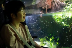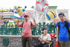 10月19,20,21日の3日間、中学部3年生の生徒3名が大阪へ修学旅行に行ってきました。1日目の海遊館では、ゆっくりと泳ぐ大きなジンベエザメを水槽に張り付くように見たり、キラキラ光るイワシの魚の群れや縦横無尽に泳ぐアシカを目で追ったりしていました。2日目のUSJでは、たくさん人が来場する中、事前に調べた乗りたいアトラクションに乗ることができました!帰り際、「また来たいなぁ」とつぶやく生徒もいました。そして、最終日の通天閣タワーでは、展望台から大阪の街を眺めました。慣れてくると3人とも窓際まで歩き、遠くを見たり通天閣の骨組みを注視したりとそれぞれ楽しんでいました。