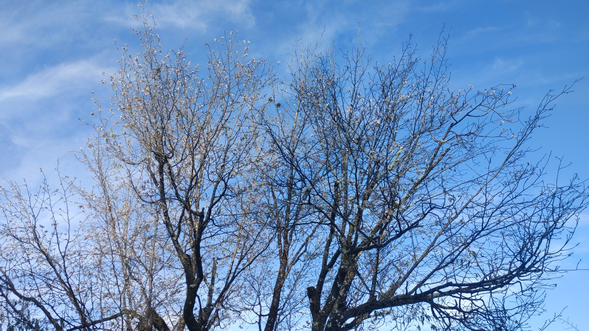 校庭側の桜の中に山桜が1本あります。1年の間に2回咲く品種で10月頃から12月の終わり頃まで咲くそうです。春の開花に比べると控えめですが、薄ピンク色のきれいな花をつけています。来校された際は、ぜひご覧ください。