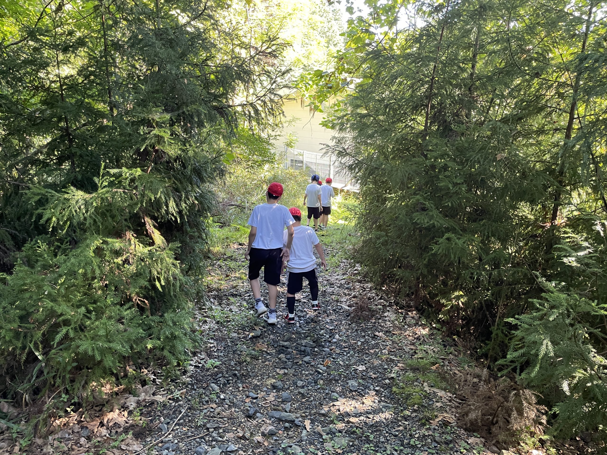 校舎の裏山 投稿日時: 2025年10月14日 投稿者: ibi-sns 本校には裏山があり、涼しい日には、山道を歩く活動をする学年もあります。 地面のデコボコや傾斜、木の根っこなど、足元の状況が常に変化する、舗装されていない道を歩くことで、「固有受容感覚」と呼ばれる、体の動きや位置を感じ取る力が自然と刺激されます。 この固有受容感覚は、姿勢を保ったり、力加減を調整したりするためにとても大切な感覚です。そして、視覚や聴覚、触覚などの他の感覚と一緒にうまく働くことで、感覚統合がスムーズに行われ、集中力や運動のしやすさ、落ち着きにもつながっていきます。