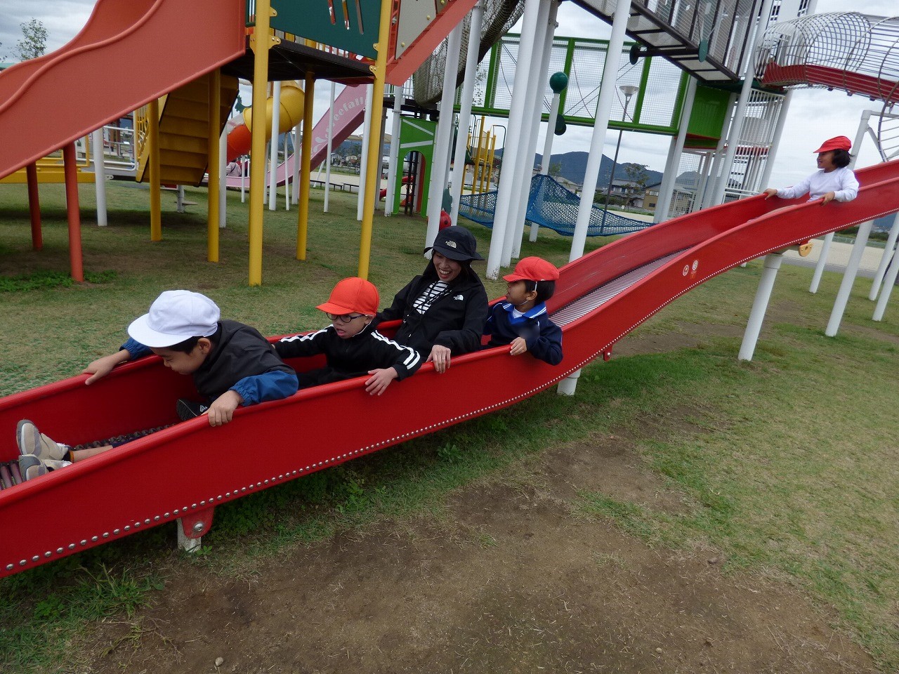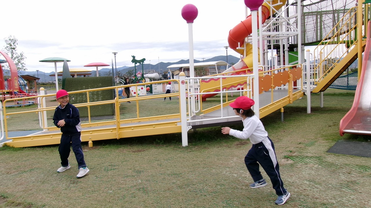 曇り空の肌寒さにも負けず、子どもたちは元気いっぱいに遊びました。