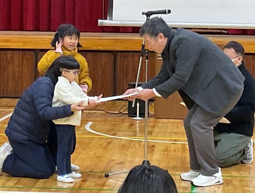 伝達表彰では、緊張しながらもしっかりと賞状を受け取り、みんなからの盛大の拍手に喜んでいました。