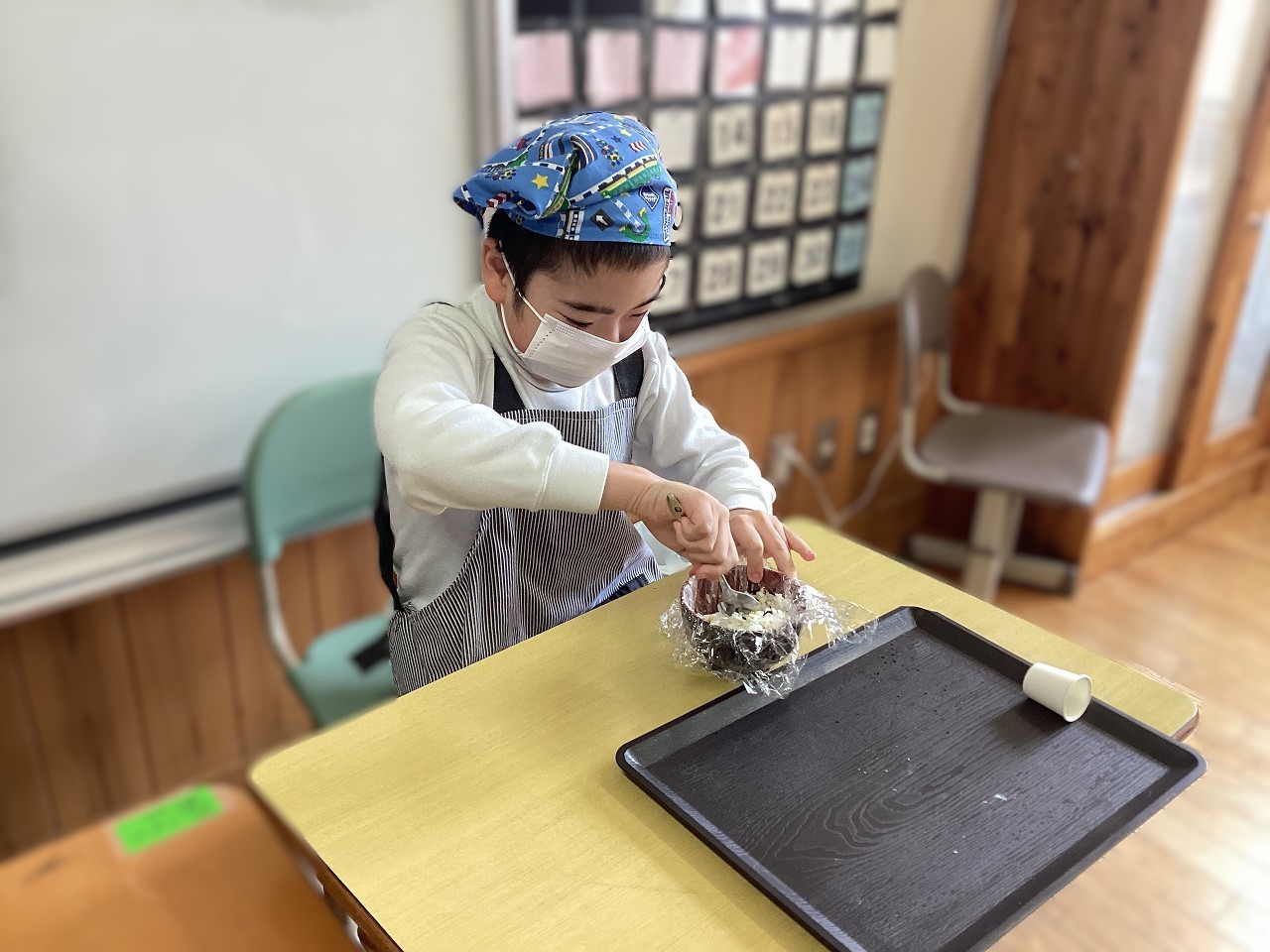小学部高学年の1月の生活単元学習では、お米パーティーをします。その準備のためにおにぎりと五平餅づくりの練習をしました。4月からお米の苗植えや収穫、脱穀を通してお米がどのようにできているかを学んできました。次は、お世話になった人をパーティーに招待してお米の料理を振る舞います。楽しいパーティーにできるように頑張っています!