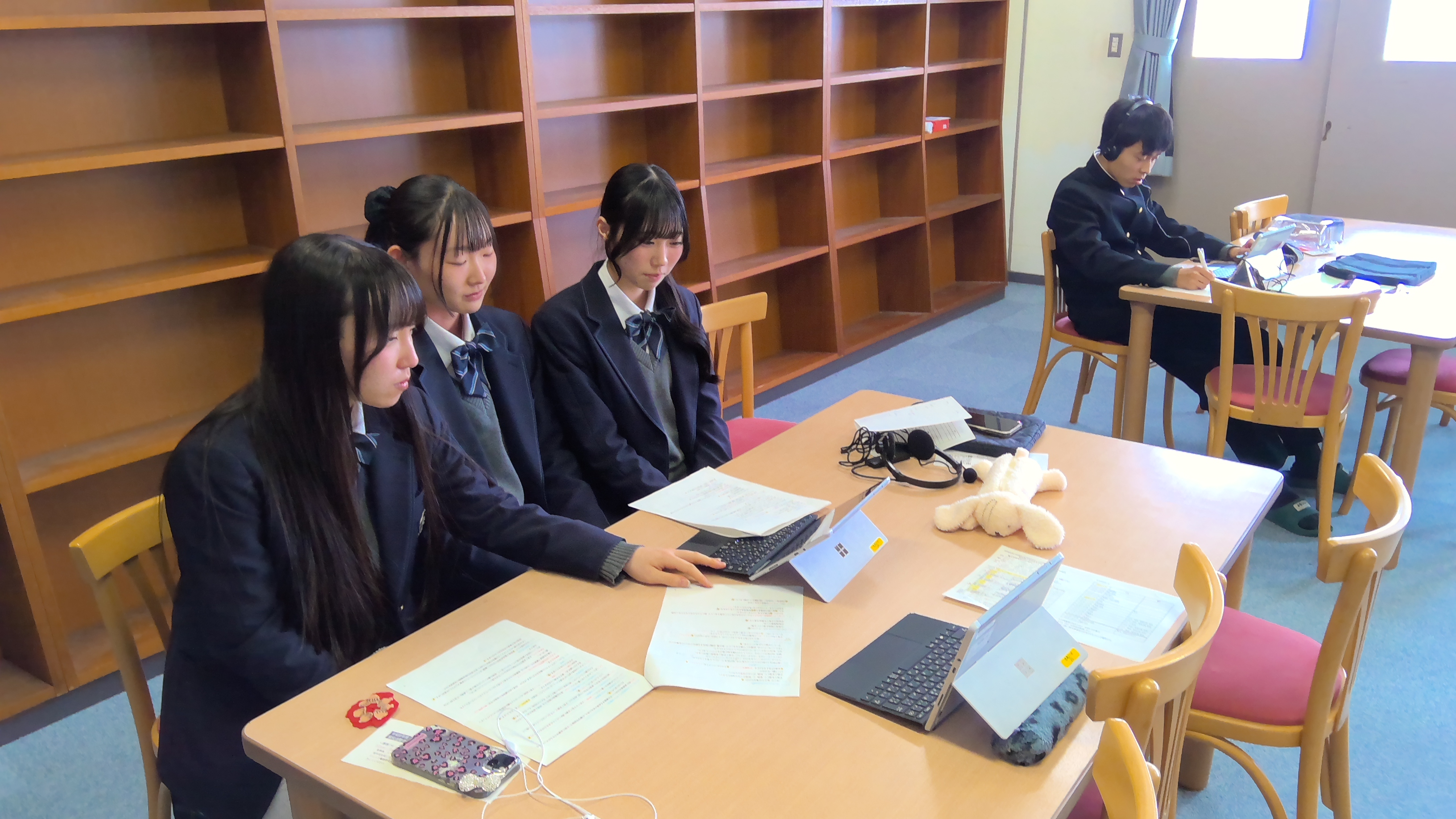 1月23日に本校と聖光学院高校(福島県)をオンラインで結び、地域課題を解決するための探究活動の成果を交流しました。池田町と聖光学院高校がある福島県国見町が友好関係にあるため、このような交流会が実現し、今年で3年目になります。2年生授業の一環で町や大学と連携しながら進めてきた探究活動について意見交換することは、生徒たちにとってとても有意義な時間となりました。