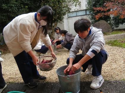 前日の13日は、テント設営場所の確認や設置をはじめ、地域の小学生が育てた野菜の下準備として、多くのサツマイモやかぼちゃを丁寧に洗い、切る作業を行いました。慣れない作業にも積極的に取り組み、協力しながら準備を進めました。