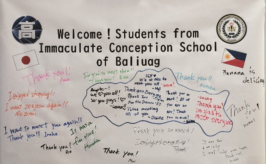 12月3日から5日にかけて、特定非営利活動法人アイキャンの吉田文さんの引率のもと、フィリピンのImmaculate Conception School of Baliuag から学生7名と教員1名が本校を訪問され、4日には授業や部活動で交流を実施しました。