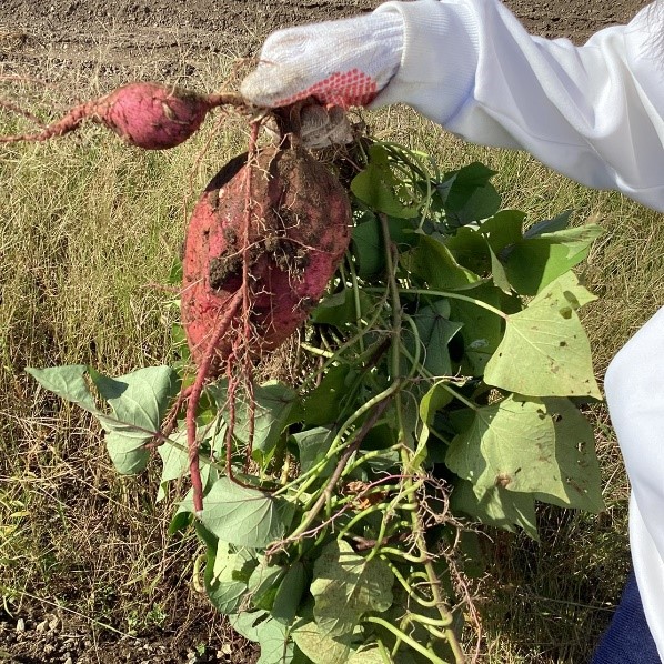 美濃元気ファームスタッフ様より、収穫のコツを教えていただいた後、芋ほり体験をしました。夏に手入れさせていただいた株がこんなに大きな芋になりとても嬉しくなりました。