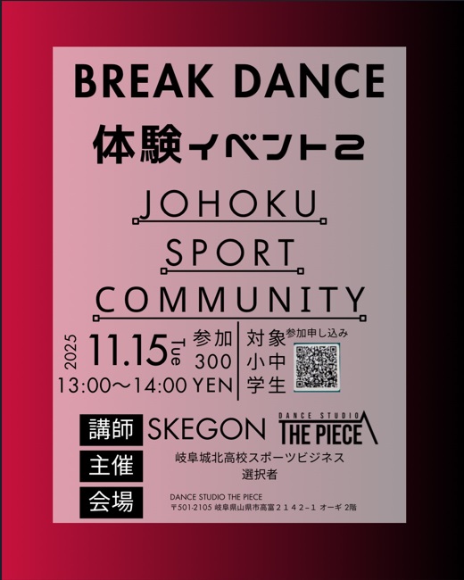 JSC(Johoku Sports Community)では、スポーツビジネスイベントで、前回大好評だった、「ダンス体験」を実施します。
