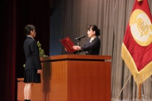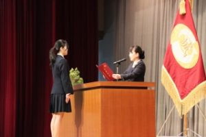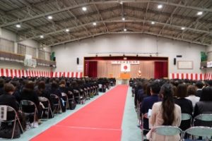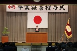 春の柔らかな日差しの中、卒業生は緊張感が漂う体育館に堂々とした姿で入場し、終始整然とした態度で式に臨んでいました。