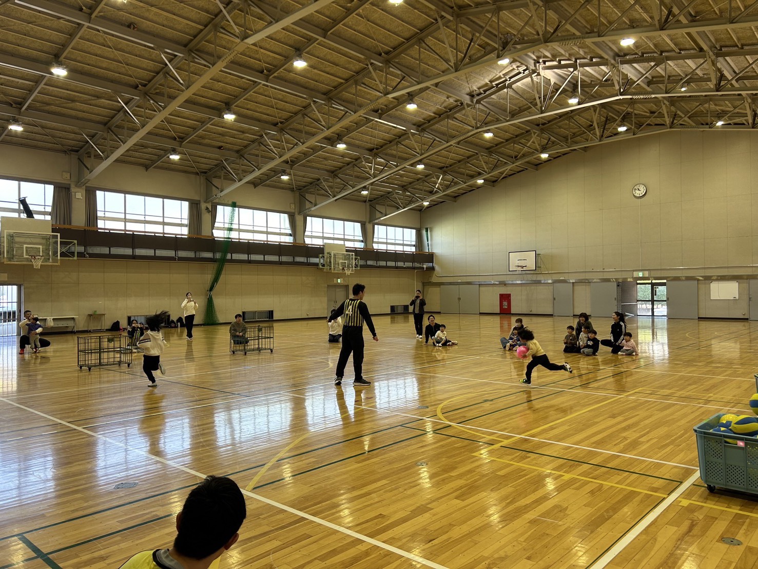 前回大好評だった内容を、さらにグレードアップさせて取り組みましたが、23名の児童とその保護者、合わせて40名ほどで、明るく、楽しく、元気よく体育館を走り回り、とても楽しい時間を共有することができました。