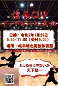 ドッヂボール交流会 投稿日時: 2025-12-24 投稿者: jyohoku-hs 2026年1月25日(日)に JSC(Johoku Sports Community)主催の、第1回 信長CUP(高校生ドッヂボール大会)を開催します。 参加申し込みはHPまたはちらしのQRからお願いします。 高校生を対象とした初の取り組みです。ぜひ、「我こそは!」というみなさんの参加をお待ちしております。 ドッヂボール交流会の詳細はこちら チラシはこちら