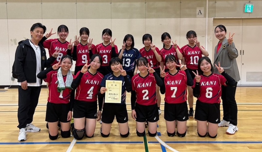 バレーボール部 スプリングチャレンジカップ2部Eで優勝しました 投稿日時: 2026年4月27日 投稿者: kani-hs 4月25日土曜日に実施された県高校スプリングチャレンジカップの2部Eリーグにおいて、本校バレーボール部が優勝しました。決勝戦は3セットにもつれる熱戦でしたが、集中力を切らさず、日頃の練習の成果を発揮することができました。インターハイ予選の活躍も楽しみです。