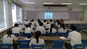 ビジネス情報科2年マーケティング類型23名が、『学びとビジネス架け橋プロジェクト』の一環として「マーケティング」で学んだ「QC活動」について、サトウパック(株)人事部長 福澤秀一様に講義して頂きました。生徒は、「QC活動ついて、流れや工程を理解することができました。説明も分かりやすくて将来に役立てそうなことがたくさんありました。貴重な機会をありがとうございました。」と感想を述べています。