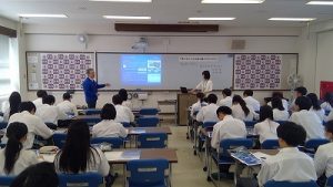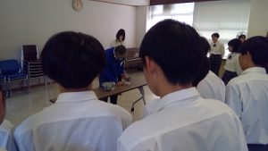 ビジネス情報科1年次生44名が、『ビジネス基礎』の授業で学ぶ「製造業の役割」について、富士変速機株式会社の佐野様と井林様からご講義をいただきました。製造業が日本経済の成長に大きな役割を果たしていること、消費者や企業のニーズを満たすために常に研究・開発を進め、商品の製造を行っていることなどを説明していただきました。生徒からは「減速機について知り、様々なところで使われていることが分かった」「身近にこんな企業があると知った」などの感想が寄せられました。