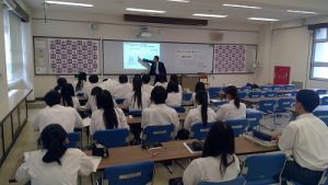 ビジネス情報科マーケティング類型2年次生23名が、『グローバル経済』の授業で学んだ「金融派生商品」について、大阪証券取引所 岩﨑様にご講義をいただきました。デリバティブ取引の仕組みや証券取引所の役割について詳しく説明していただきました。生徒からは「価格変動というリスクに対応するためにデリバティブはとても重要ということがわかった。」、「先物取引とオプション取引の違いを理解することができた。」などの感想が寄せられました。