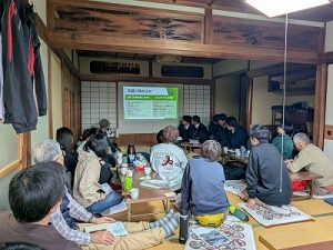 ビジネス情報科3年の『課題研究』でNPO法人インク様と連携し、活動を行っている「emptys」のメンバー6名が、「美濃市町屋の片づけ・発掘体験ツアー」の参加者に向けて、「美濃市の空き家の現状」についてプレゼンを行いました。生徒はうだつの上がる町並みの中にある建物を店舗別に色分けし、町中にどんなお店があるかを調査し、10年前と比べて空き家の割合が減少している理由について仮説を立てて検証した結果を発表しました。