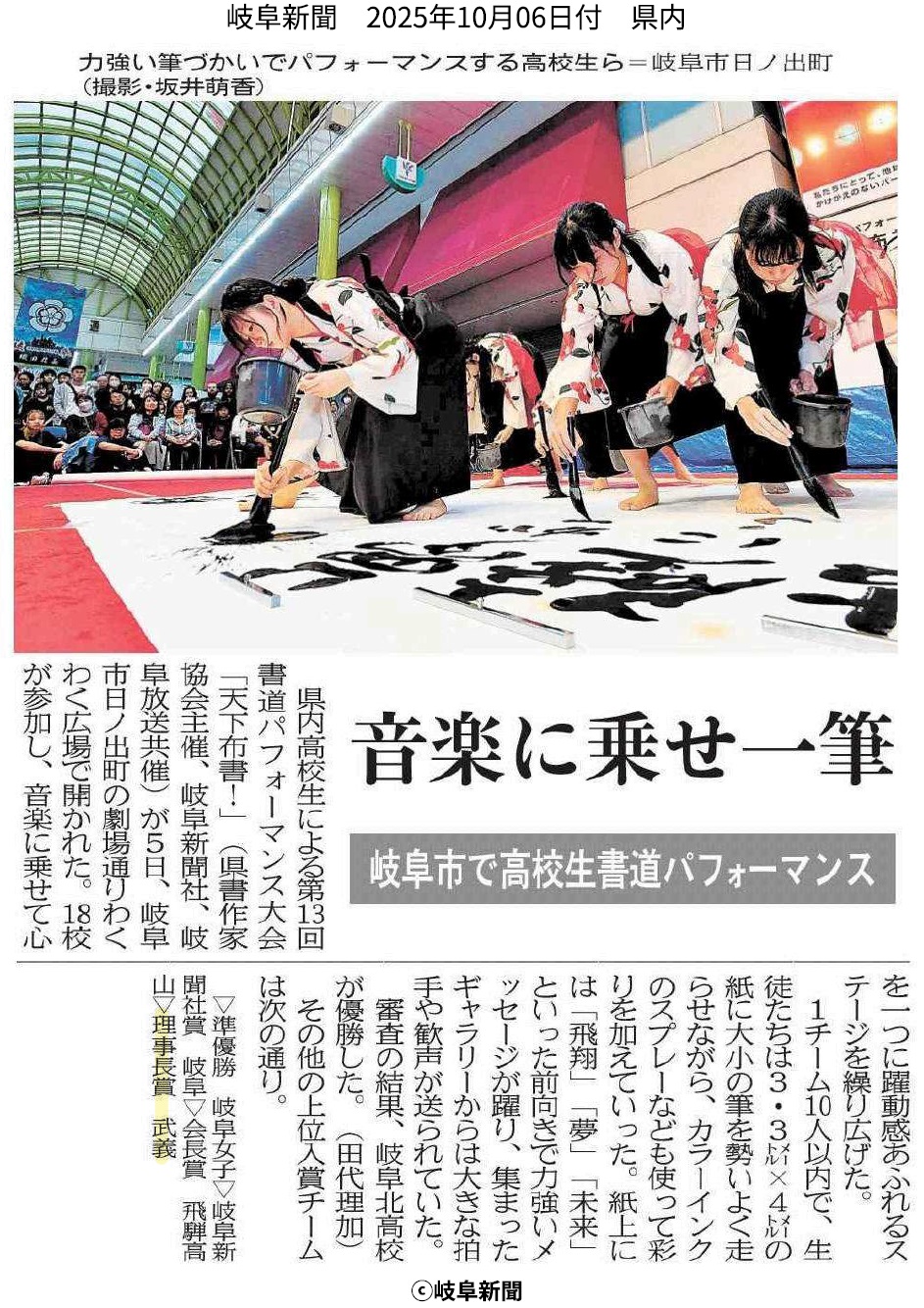 報道記事 (このページの記事・写真等は各新聞社の許諾を得て転載しています。) 令和7年10月6日 岐阜新聞記事 ページトップに戻る 令和7年8月23日 岐阜新聞記事 ページトップに戻る 令和7年8月8日 岐阜新聞記事 ページトップに戻る 令和7年8月3日 中日新聞記事 ページトップに戻る 令和7年5月16日 中日新聞記事 ページトップに戻る 令和7年4月19日 中日新聞記事 本記事の詳細はこちらへ ページトップに戻る 令和7年3月27日 中日新聞記事 ページトップに戻る 令和7年2月1日 岐阜新聞記事 ページトップに戻る 令和6年12月27日 中日新聞記事 ページトップに戻る