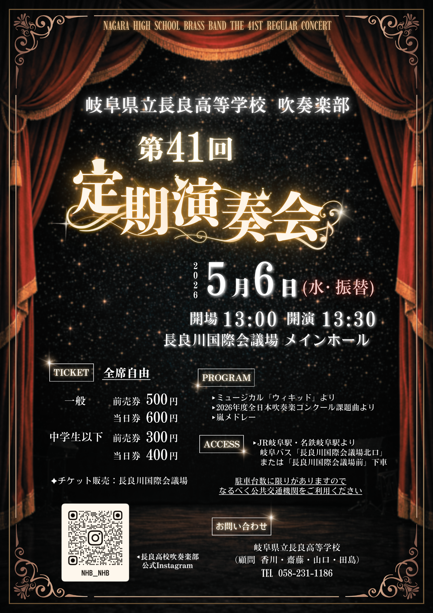 5月6日(水・振替)に長良川国際会議場にて、第41回定期演奏会を行います。