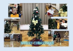今回の部集会のテーマはクリスマスでした。プレイルームからオンラインで訪問の仲間とつながり、楽しい時間を過ごしました。ゲームでは、自分の方法でボウリングのピンを倒し、その数だけオーナメントをクリスマスツリーに飾りました。最後に、訪問の仲間の演奏に合わせてツリーの点灯を行い、キラキラと輝くツリーをみんなで楽しみました。