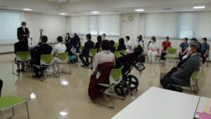 講話では、講師のお二人が実際に被災地で支援をされた様子を伺い、自助(自分の命は自分で守る)、共助(お互い助け合う助ける人になる)、公助(自分にできることはないかを考える)、「今自分にできることは何か」等を教えていただきました。「当たり前の日々を過ごすことへの感謝」を痛感し、今後の人生において大きく響く体験となりました。