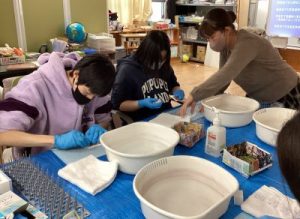 災害で汚れた写真の汚れを丁寧に取って洗浄して再び持ち主に届ける活動で、生徒と教員で汚れた写真を心を込めて丁寧に洗浄しました。普段できない体験をさせていただき、一人一人が被災された方のことを思って、心を込めて作業を行っている姿が見られました。