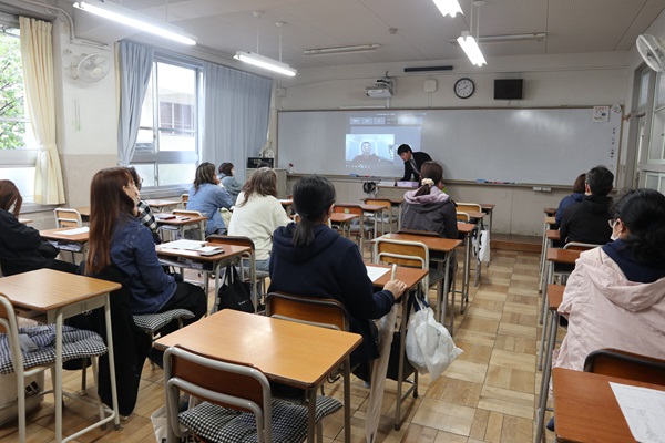 令和7年5月2日、本校にて育友会総会、ならびにクラス懇談会、部活動懇談会が行われました。総会は、図書室と各クラスの教室をオンラインでつないだ形式で行われました。