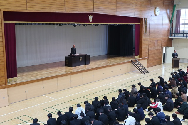 令和8年1月8日、本校で3学期始業式が行われました。学校長は「叱ってくれる人は大切」というテーマで訓話を行い、社会に出てから叱られることの意味を説きました。